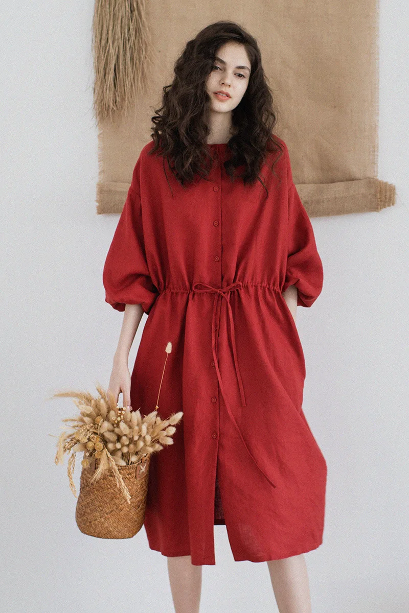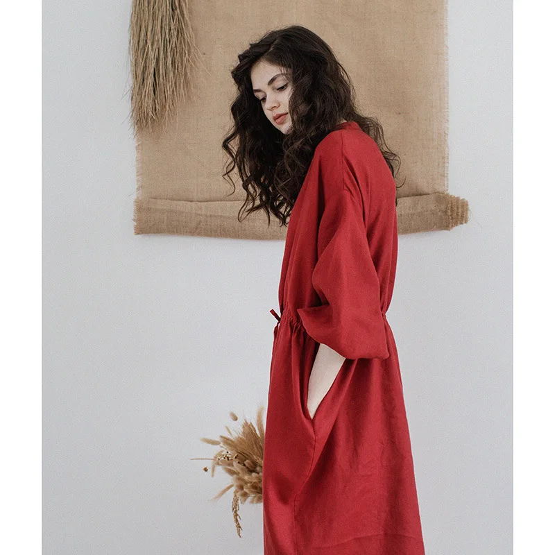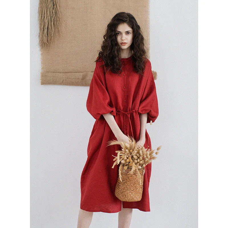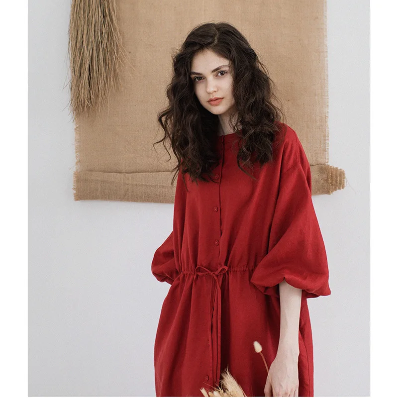 Новое Женское платье из хлопка и льна, летняя одежда для женщин, красное платье, корейское платье, летние платья для женщин