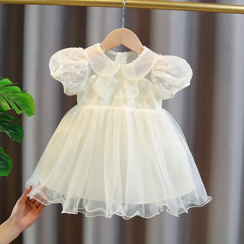 Новое Летнее Детское платье для девочек, модные сетчатые платья с пышными рукавами и бусинами для дня рождения, платья принцессы для девочек, детская одежда