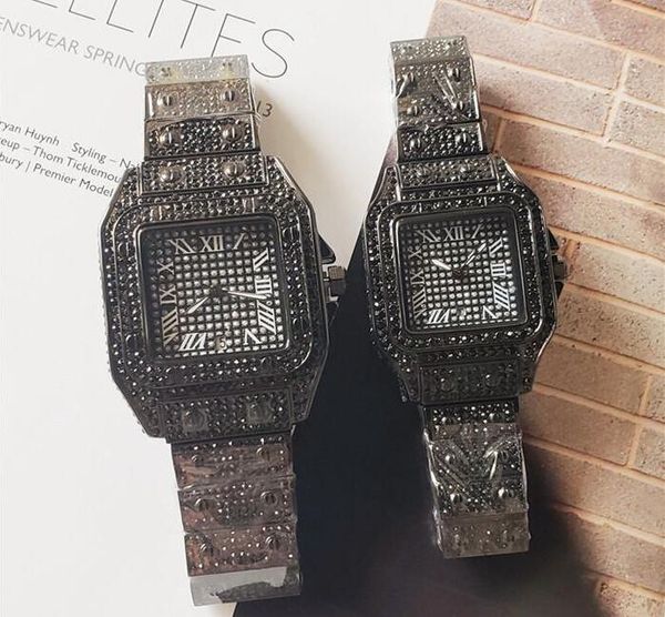 Новое Прибытие Полный Бриллианты Женщины Квадратные Часы Мужчины Кварцевые Monement