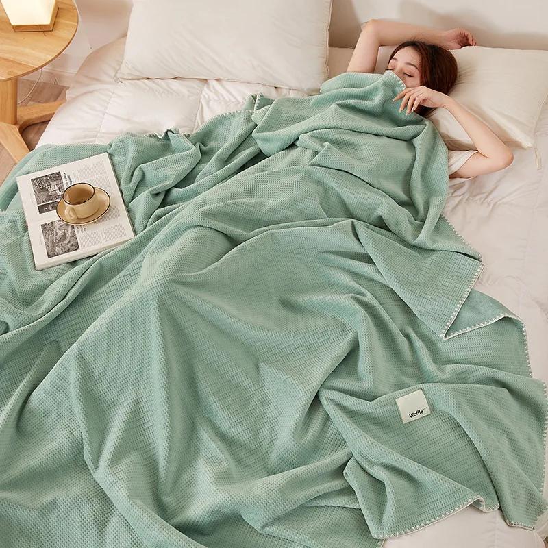 Новое вафельное бархатное одеяло, однотонное, однотонное, утолщенное, теплое, из молочного волокна, маленькое одеяло для отдыха 100x150cm 0.7kg