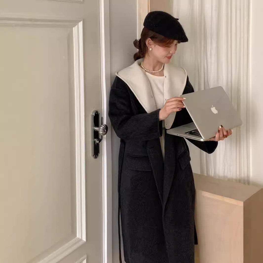 Новое двухстороннее шерстяное пальто в корейском стиле с капюшоном, осенне-зимнее шерстяное пальто M чёрный