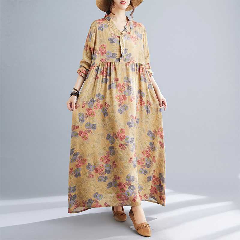 Новое длинное платье сезона с винтажным принтом и свободным подолом L