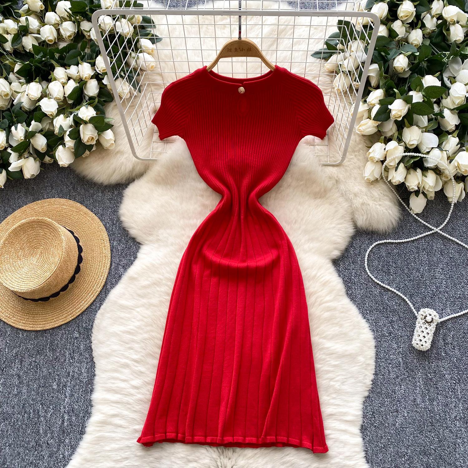 Новое китайское национальное модное трикотажное мини-платье с пряжкой, облегающее, легкое, роскошное, элегантное, короткое, красное платье One Size красный