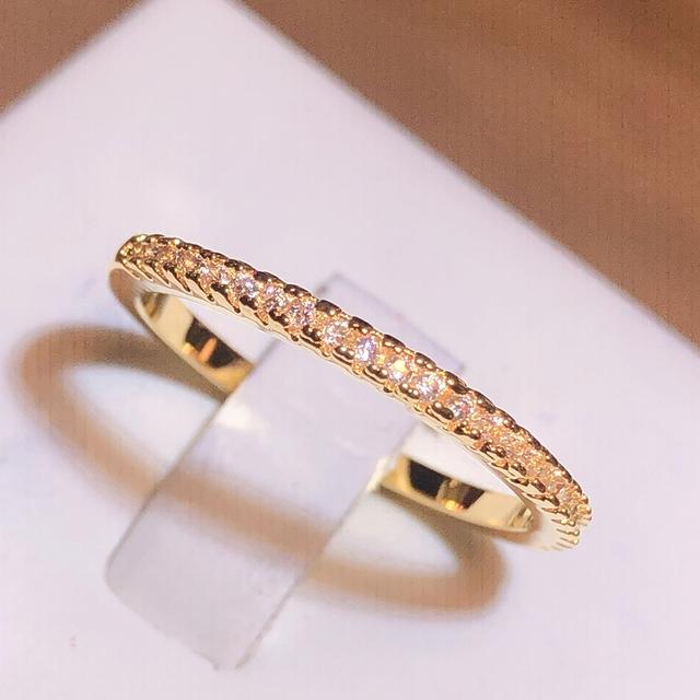Новое креативное однорядное кольцо с цирконом из желтого золота, полное кристаллов, кольцо с цирконом, кольцо с микро-бриллиантом, кольцо для пары, вечерние подарок на день рождения 7 белый