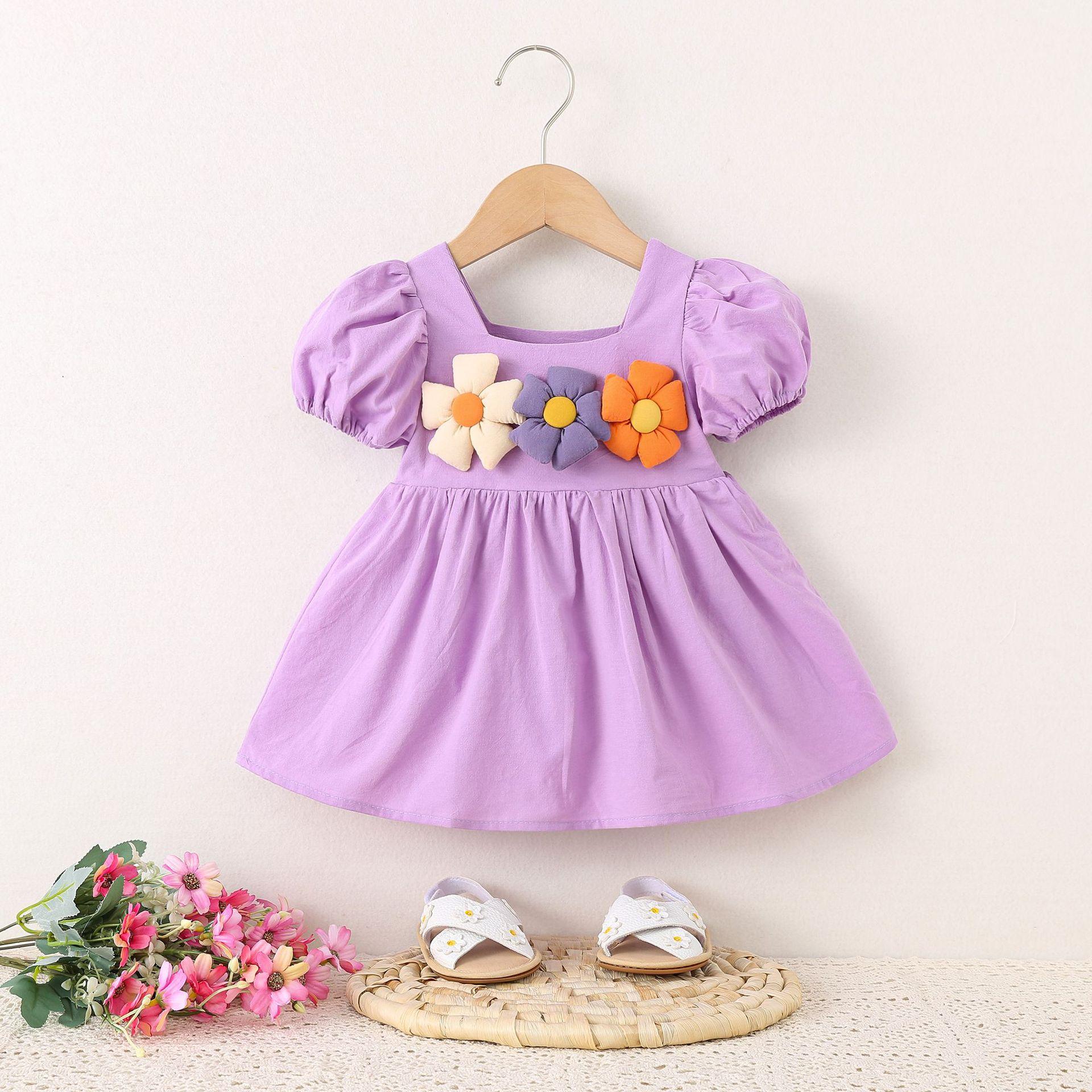 Новое летнее платье для девочек с рукавами-фонариками, юбка принцессы, детская летняя юбка с цветочным узором для девочек 100cm фиолетовый