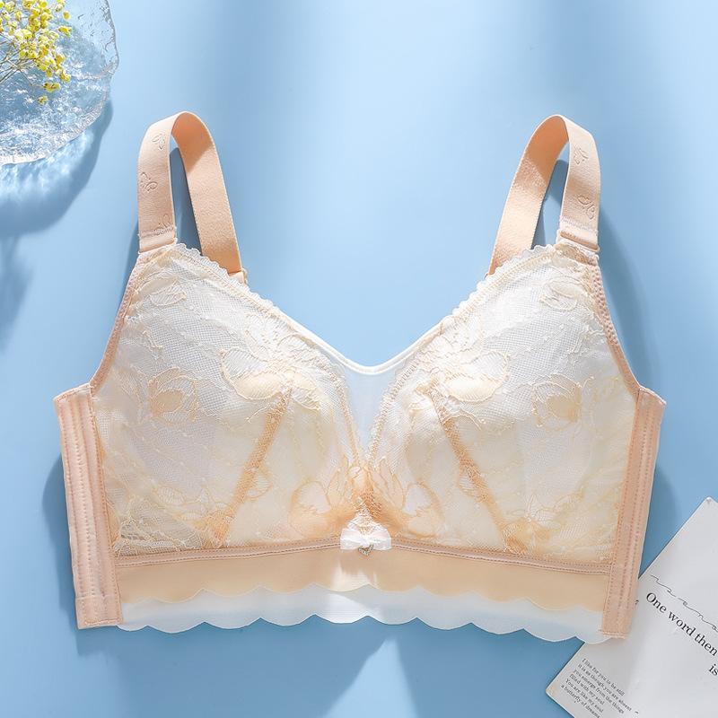 Новое нижнее белье большого размера без губки, большая грудь выглядит маленькой, ультратонкий бюстгальтер с заячьими ушками, бесшовная сборка и антипровисающий бюстгальтер 44/100 бежевый