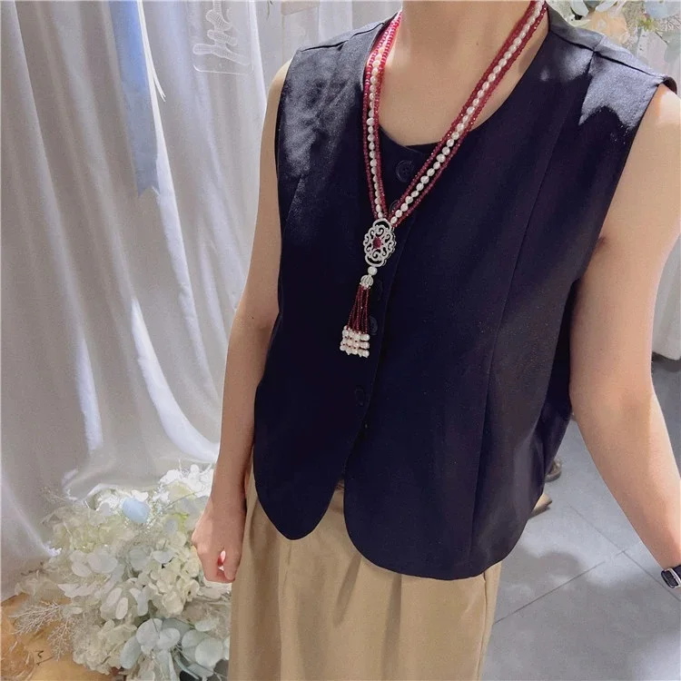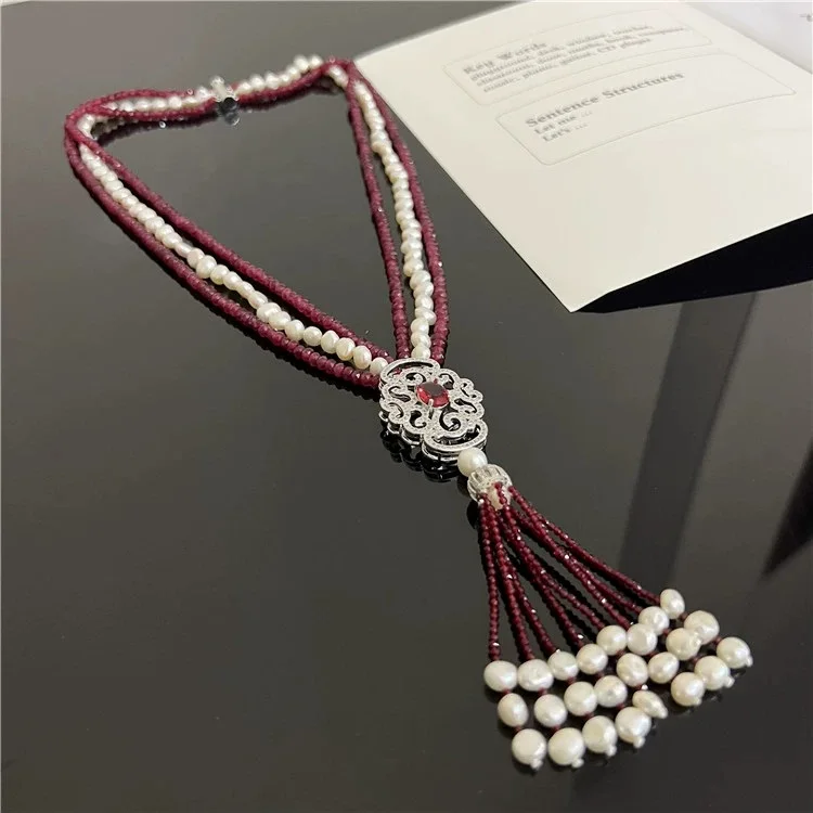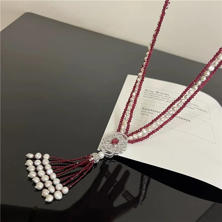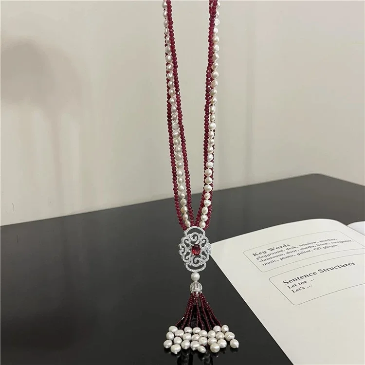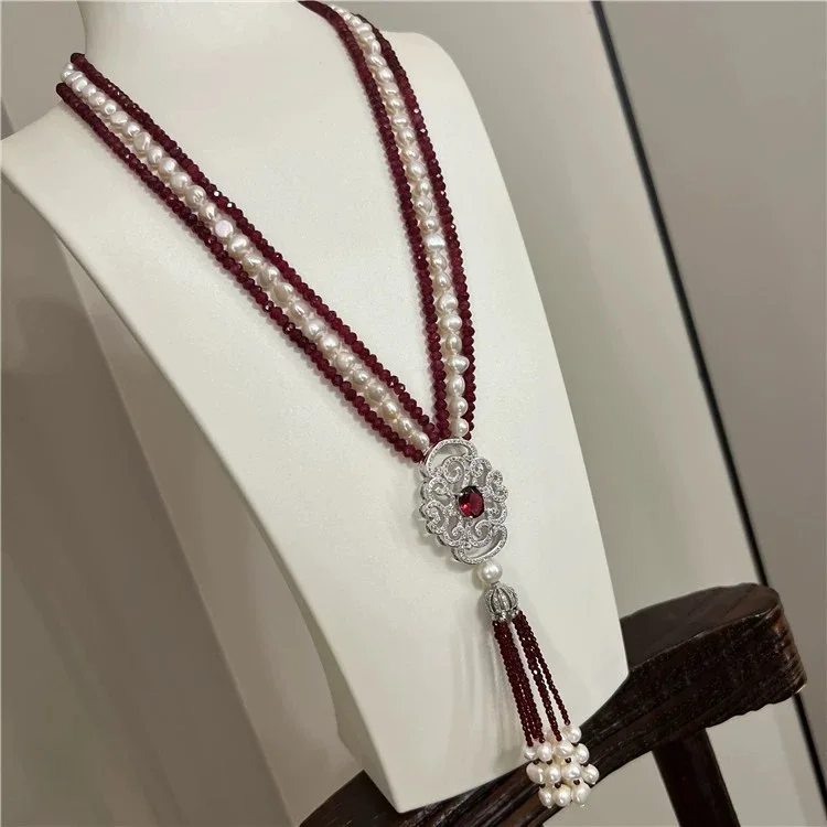 Новое ожерелье из натурального жемчуга барокко, многослойное длинное ожерелье из красного агата на свитер