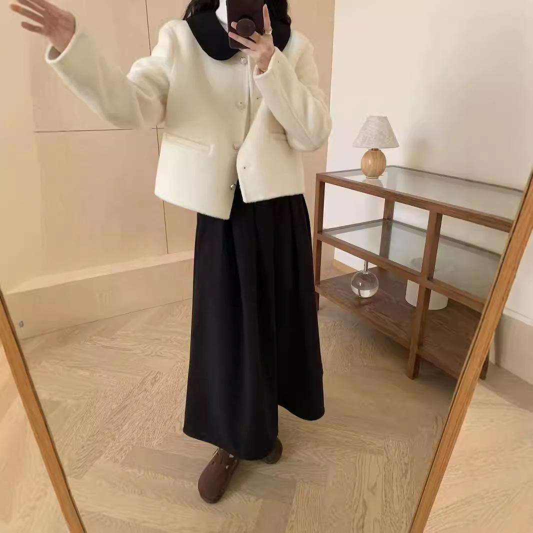 Новое осенне-зимнее женское короткое шерстяное пальто со съемным воротником в стиле «милый стиль» из двух предметов одежды в сочетании цветов M