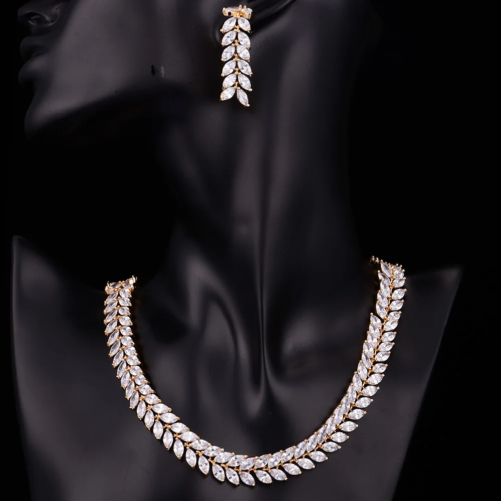 Новое поступление, Золотые Ювелирные наборы с фианитами в форме капли воды для женщин, набор ювелирных украшений для вечеринки, Bijoux CZL-6142