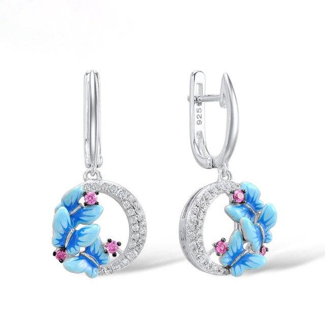 Новое поступление, серьги-гвоздики в форме синего цветка, круглые ювелирные изделия с цирконом, модные женские аксессуары для ушей для девочек