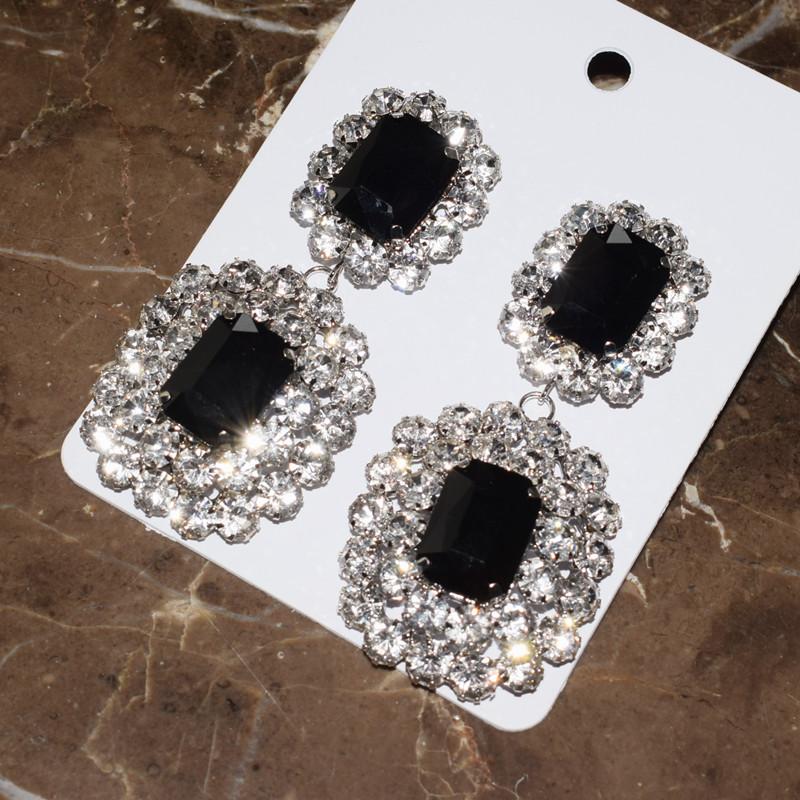 Новое поступление, черные кристаллы, большие висячие серьги для женщин, модные ювелирные изделия, вечерние шоу, женские серьги-заметности, аксессуары белый