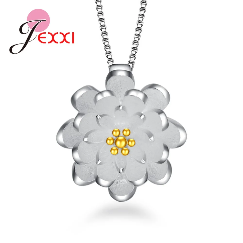 Новое растение цветок лотоса брелок ожерелье ключичная цепочка Кулон женщина серебро 925 пробы ромашка дизайн ожерелья