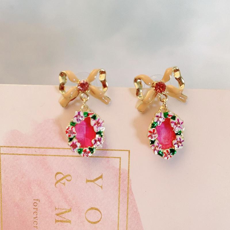 Новое романтическое милое розовое ожерелье с драгоценными камнями и серьгами для женщин, модные ювелирные аксессуары, милый элегантный хороший подарок Earrings