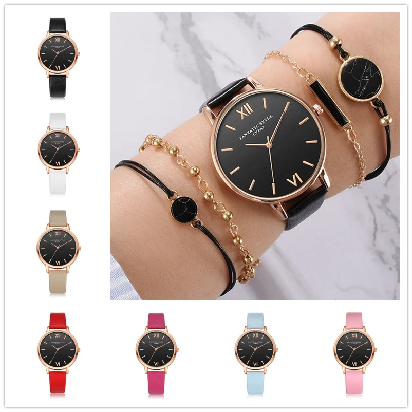 Новые Модные Простые кварцевые часы с ремешком из ПУ кожи, женские часы с браслетом, женские черные часы