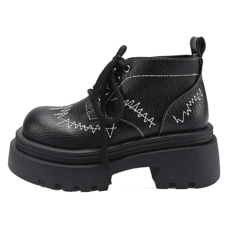 Новые Ретро Ботильоны на Толстом Каблуке и Платформе для Женщин Весна Осень Британский Стиль Женская Обувь Короткие Ботинки 35 чёрный