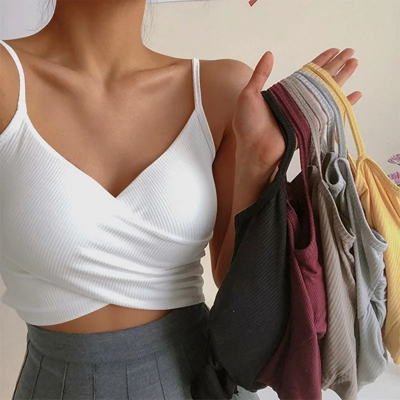 Fashion Sexy Women's V Neck Solid Color Patchwork Cropped Navel Sleeveless Camisole Casual Summer Slim Tank Top womens fashion