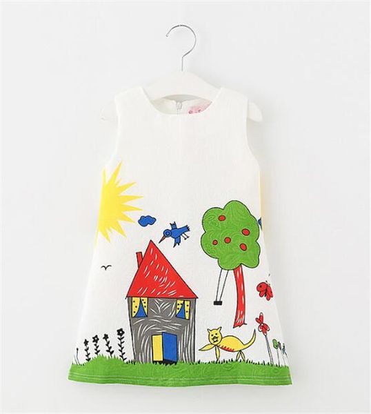 Новые дети девушка платье мода сладкий печатных мультфильм жилет юбка Оптовая ан
