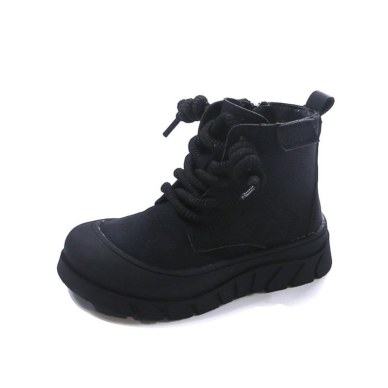 Новые детские ботильоны на платформе, простые, универсальные, для девочек, повседневные, кожаные, модные, в стиле пэчворк, нескользящие, детские, черные, хаки 28 чёрный