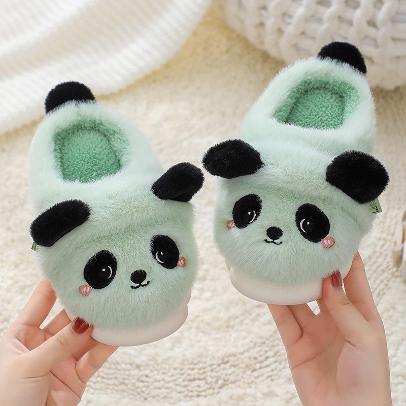 Новые зимние домашние тапочки для девочек, обувь в виде панды, детские теплые домашние тапочки с меховыми животными, детские пушистые мюли, кавайные тапочки для дома 18-19 inner 15cm зелёный