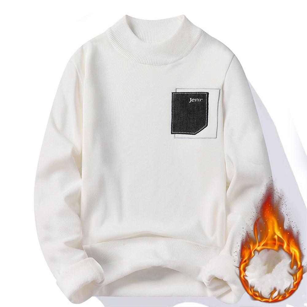Новые зимние мужские свитера с воротником, теплые брендовые вязаные пуловеры, мужские однотонные повседневные мужские свитера, осенний трикотаж XXL белый
