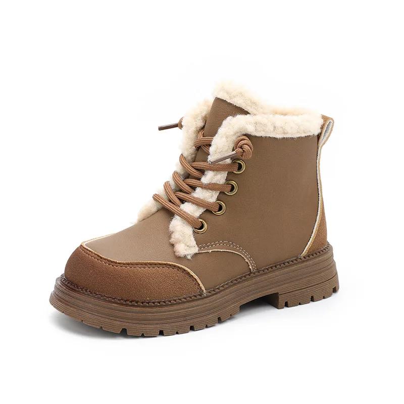 Новые зимние сапоги для девочек с толстой подошвой, модные плюшевые универсальные детские повседневные сапоги из хлопка, детские ботильоны с круглым носком в стиле пэчворк 26 хаки