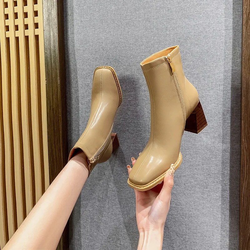 Новые короткие ботинки, женские ботинки Martin 2021, модные ботинки в британском стиле на высоком каблуке, натуральные толстые и тонкие ботинки с...