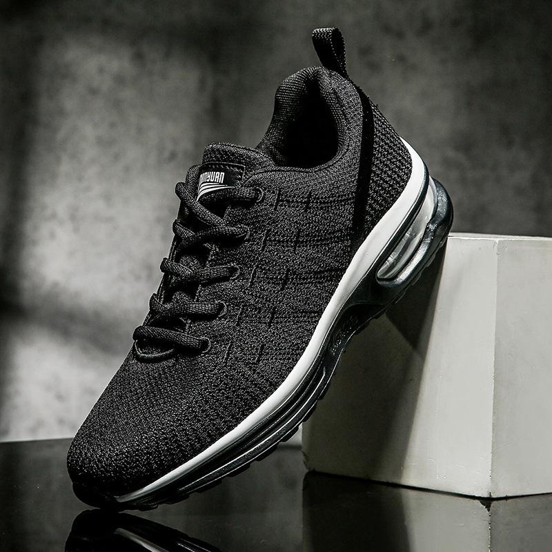 Новые кроссовки на воздушной подушке, унисекс, модные кроссовки для бега, обувь для влюбленных, удобные дышащие сетчатые кроссовки, летающие тканые кроссовки 46 чёрный