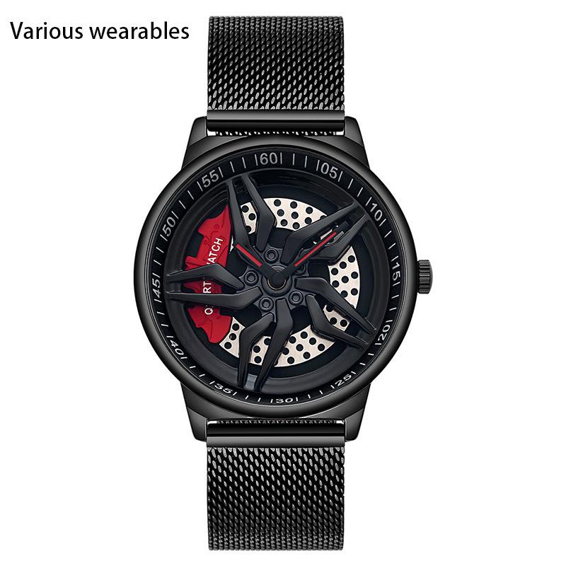 Новые крутые мужские кварцевые часы с трехмерным вращающимся циферблатом и водонепроницаемым сетчатым ремешком