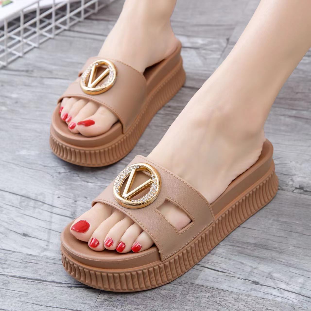 Новые крутые тапочки женские летние полые V-образные на плоской подошве модные тапочки-маффины на толстой подошве с одним ремешком 40