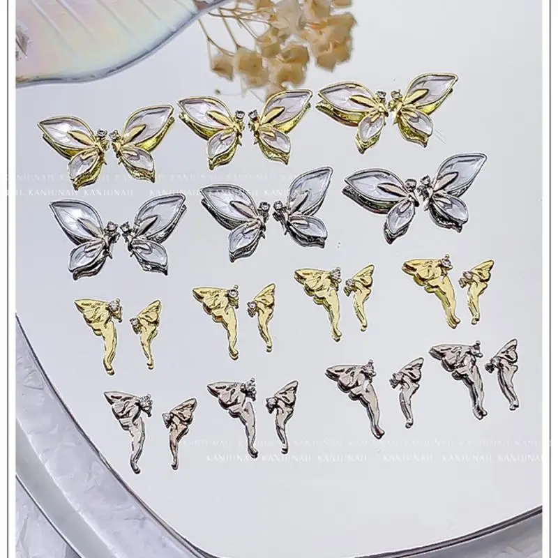 Новые левые и правые алмазные украшения для ногтей в форме бабочки, искусственные крылья из сплава, стильные украшения для ногтей, Модный Нежный дизайн для салона красоты