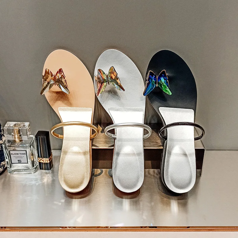 Новые летние брюки с бабочками Стразы туфли на танкетке; Пляжные сандалии для курорта