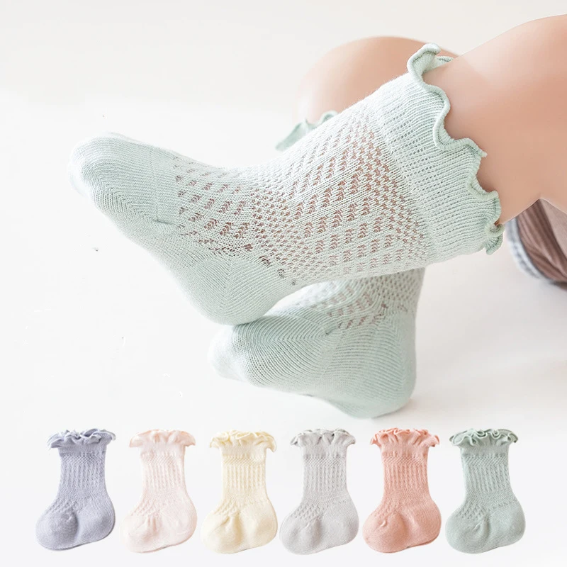Новые летние детские носки, Дышащие Мягкие сетчатые носки для маленьких девочек до колен, милые мягкие носки с рюшами для новорожденных