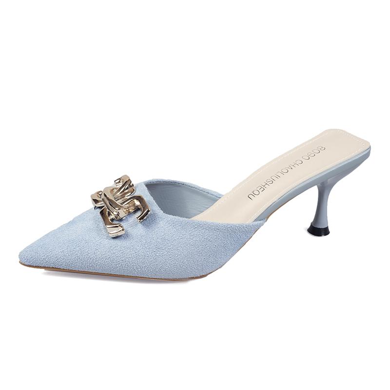 Новые летние женские сандалии, обувь, металлические цепочки, плоская подошва, заостренный носок, женские тапочки, женская повседневная обувь, уличные шлепанцы 40 светло-синий