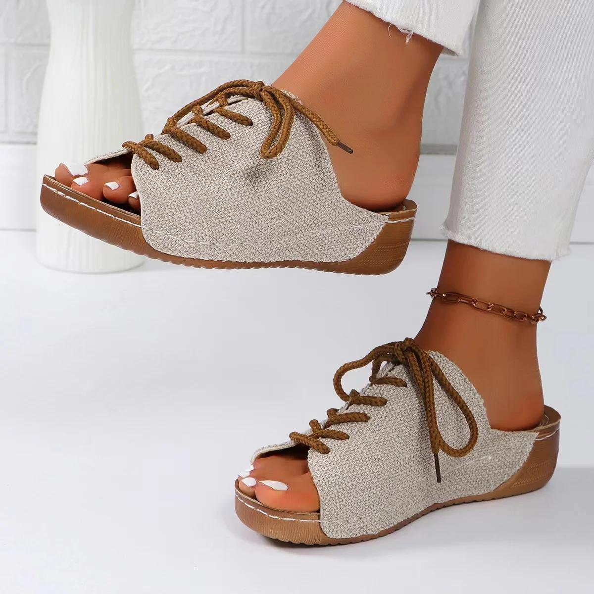 Новые летние женские тапочки на платформе повседневные модные ажурные женские туфли сандалии без застежек женские De Mujer 43 бежевый