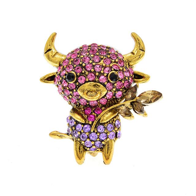 Новые маленькие броши с изображением быка из риенстоуна для женщин, булавка с изображением коровы, дизайн животных, 2020 китайский год, ювелирные изделия Зодика, 6 цветов в наличии