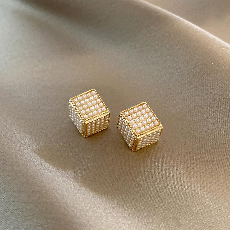 Новые минималистичные и изысканные квадратные серьги с жемчужным кубом и геометрическим узором для женщин