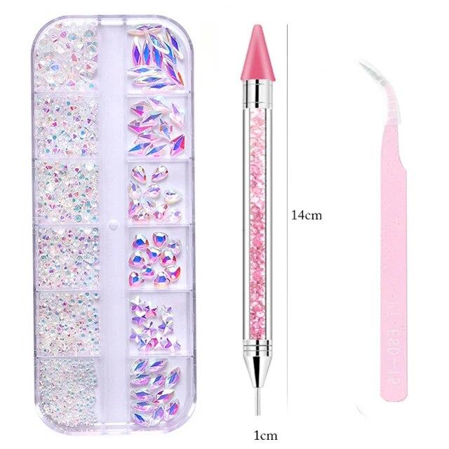 Новые многоразмерные 12 сеток, стразы для ногтей, 3D кристалл AB, сделай сам, украшения для дизайна ногтей, кристалл, бриллиант, драгоценный камень, 3D красота ногтей чёрный