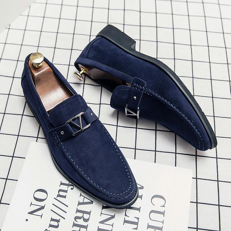 Новые модные замшевые кожаные мокасины мужские деловые туфли роскошные легкие туфли для вождения элегантные праздничные туфли для офиса черные 48 синий