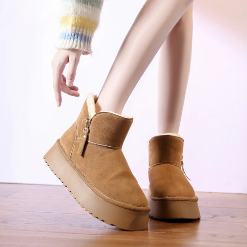 Новые модные зимние женские утепленные Короткие Плюшевые Теплые ботильоны на плоской толстой подошве женские меховые ботинки на плоской п...