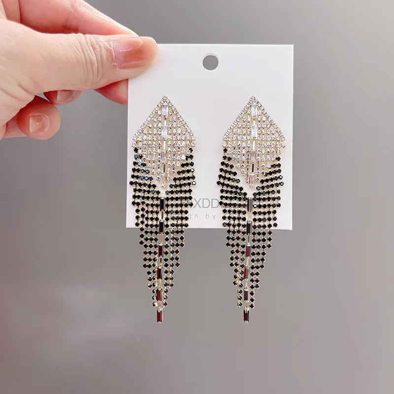 Новые модные стильные черные инкрустированные цирконами геометрические трендовые серьги