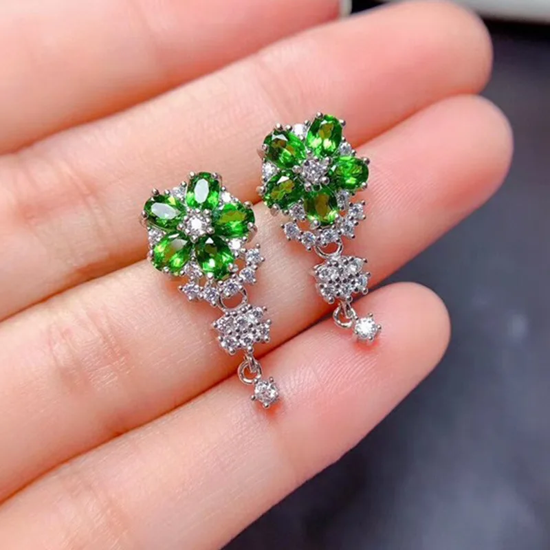 Новые модные цветочные серьги, Элегантные зеленые серьги в форме цветка с фианитом для женщин, изящные женские серьги, ювелирные изделия дл...
