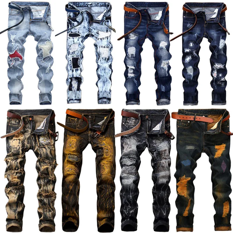 Новые мужские джинсы, прямые брюки, рваные джинсы, винтажные джинсы, длинные брюки, повседневные брюки