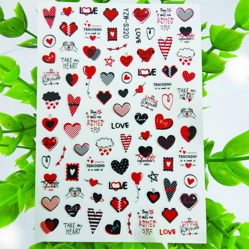 Новые наклейки на День святого Валентина, наклейки для ногтей с милым сердцем, 3D наклейки для ногтей, художественные декоративные слайдеры, ...