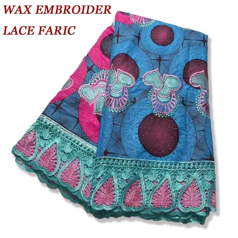 2021 новый дизайн 6y вощеная ткань с кружевной вышивкой африканская 100% хлопчатобумажная ткань кружево Дубай Стиль для свадебной вечеринки оде...