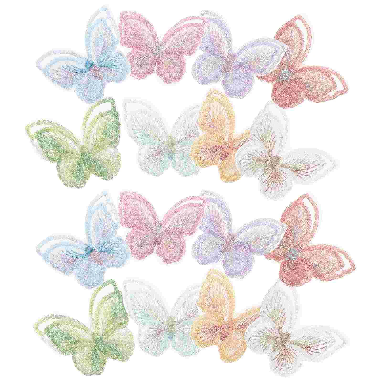 24 Pcs Butterfly Patch Appliques Multipurpose Costume Patches Embroidery Fabric Sewing Polyester Hair Clips