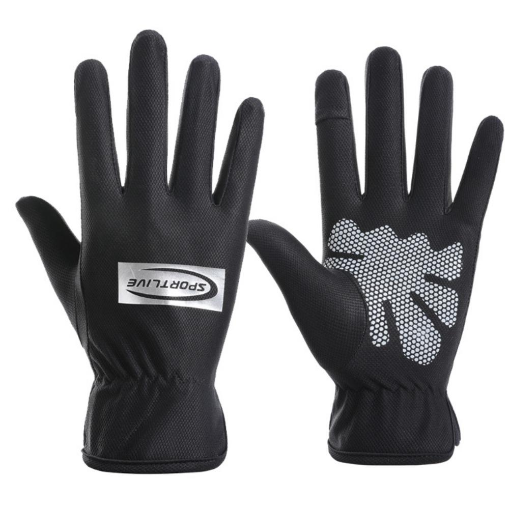 Новые перчатки Тонкие мужские и женские дышащие эластичные сетчатые перчатки для занятий спортом на открытом воздухе, вождения, альпинизма, рыбалки, с нескользящим покрытием и защитой от солнца One size чёрный