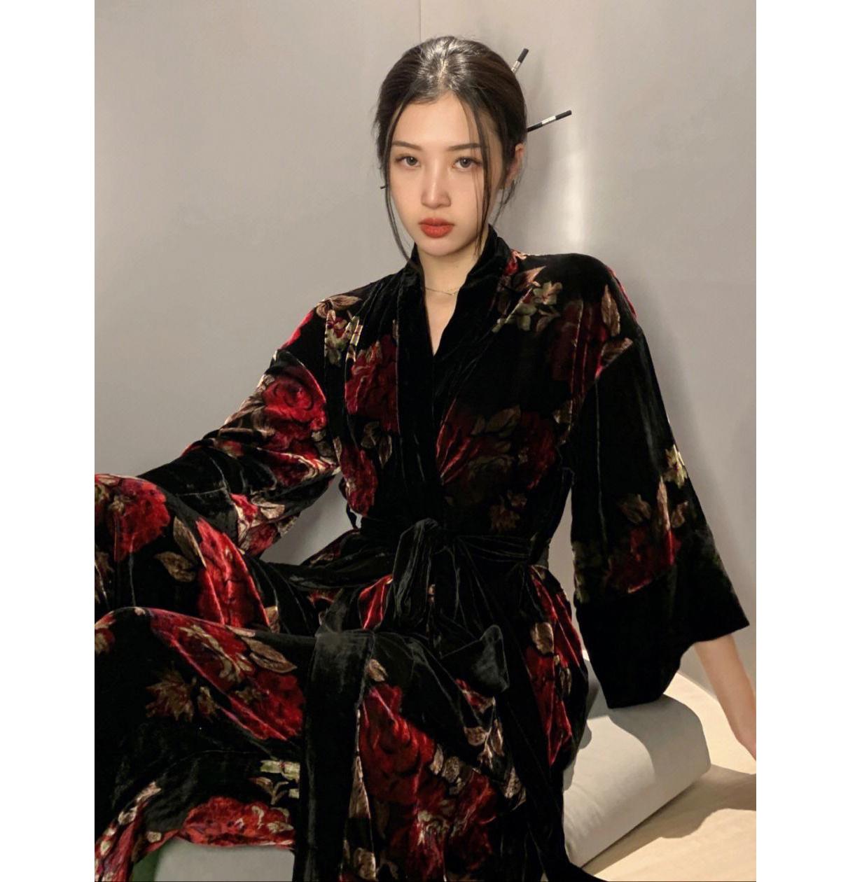Новые пижамы в китайском стиле с принтом в стиле ретро, новые зимние элитные длинные пижамы, брюки и комплекты домашней одежды S чёрный