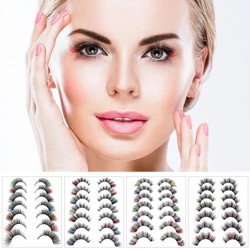 Новые праздничные вечерние натуральные ресницы для маскарада, вечеринки, косплея, кошачий глаз, рождественские накладные ресницы, цветные ...