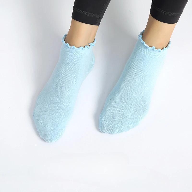 Новые профессиональные носки для йоги с двумя пальцами, женские дышащие носки с открытой спиной и рюшами для балета, пилатеса, силиконовые нескользящие танцевальные спортивные носки
