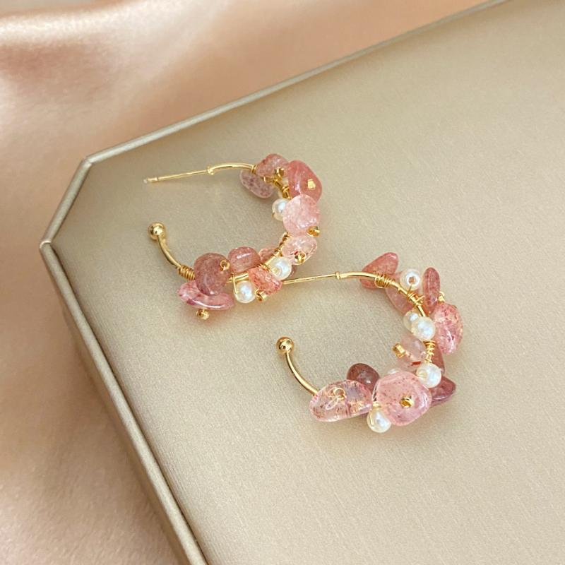 Новые розовые серьги в стиле французского ретро для девочек, романтические серьги C-образной формы с искусственным кристаллом и жемчугом